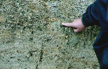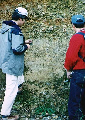 れき層の中には、れき岩・砂岩・花コウ岩などが見られる。