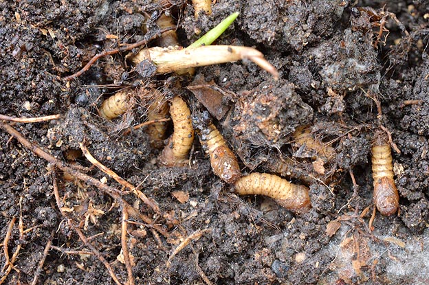 森林の保全のための調査をしておられるIma.さんからケバエ類の幼虫がたくさんいるのを教えていただきました。まるまるとした幼虫が集まっています。環境や大きさからハグロケバエではないかと思いました。飼育して成虫にすることにしました。ところが窒息させてしまって全滅させてしまいました。