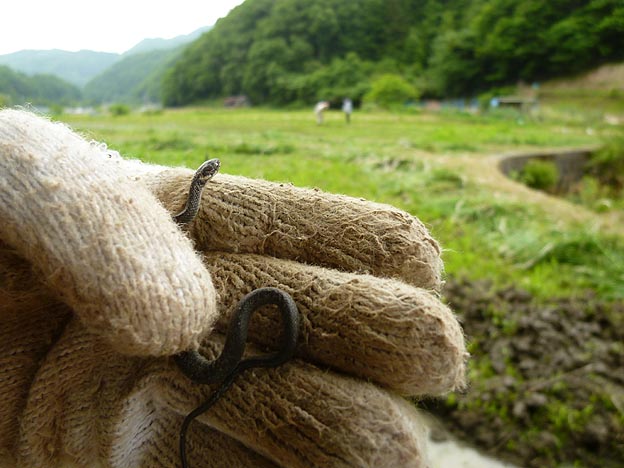 ヒバカリがいました。ほかの人たちはミミズだと思ったそうです。幼蛇だと思います。もっと小さいものも見たことがあります。 |