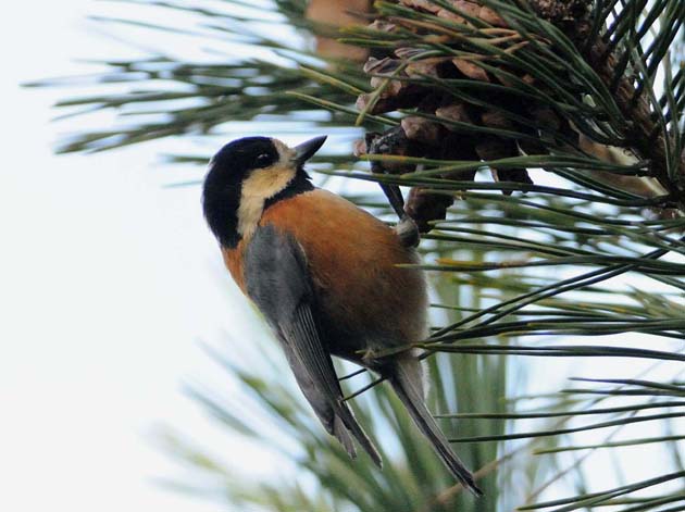 道ばたの松の木でヤマガラが松の実を食べていました。