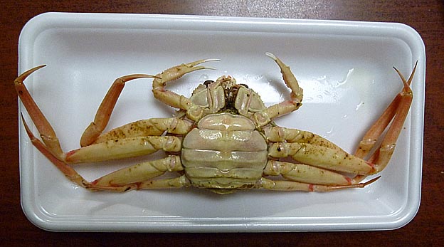 参考のためにズワイガニのメスの写真を載せておきます。いわゆるセコガニ(こうばこ、せいこがにともよばれています。)です。「ふんどし」の部分が大きく、一目でメスであることがわかります。