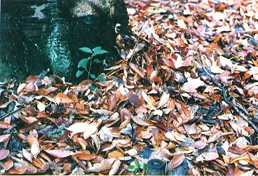 この時は授業中でしたので、次の28日は朝、授業が始まる前に昨日のため糞の場所を見に行きました。みんながいじくったためか50cm程離れた場所に新しい糞がありました。昨夜の雨で全体に柔らかくなっていました。夕食のメインメニューにはあまり自然の物は見あたりませんでした。パンやドッグフードが中心だったのかも知れません。他に参加していた先生の話では、
