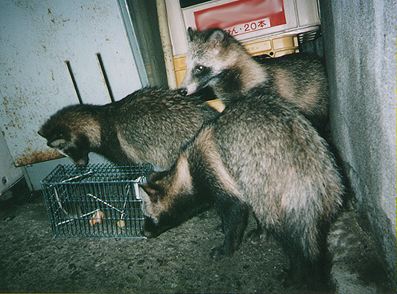 このタヌキたちは、夜7時半から8時半ごろに餌をもらいにやってきたそうです。お店が終わるころにもやってくることがあったそうです。鳥の肉が大好物だそうです。パンと牛乳もいつもなくなっているようです。でも、タヌキにも好き嫌いがあるようで、チーズがあまり好きではない子どももいたそうです。ふだんは、ドッグフードも用意してあります。
