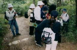 ((季節は秋、きのこや植物・昆虫などの観察をしながらの観察会です))
