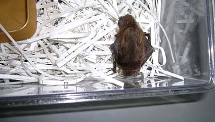 2006年3月1日、出勤するとhir.さんが、「昨日コウモリがいた。」といって昆虫飼育用のケースに入った小さなコウモリを見せてくださいました。アブラコウモリです。