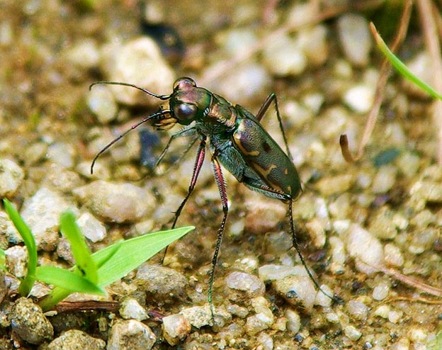 コニワハンミョウがアリを追いかけていたそうです。松本 勝さんの撮影です。そういえばニワハンミョウもよくアリを追いかけています。