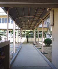 渡り廊下の上です。キジバトはこのような場所にもよく巣をつくります。