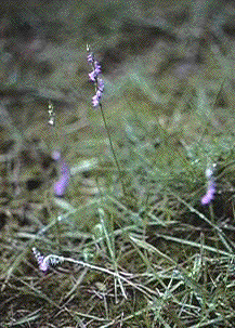 出張(しゅっちょう)が終わって帰るときに、池田市立緑丘小学校の玄関(げんかん)近くの芝生(しばふ)を見るとネジバナが咲(さ)いていました。よく見られる野生のランです。小さくてランのようには感じませんが、虫めがねなどで見ると花のようすがよく分かります。最近は、野生のランを見つけるのがむずかしくなりましたが、この花だけは芝生にはえてくるので見ることができます。 ところが、この花を見ていると、いつも理科でお世話になっている方が、「この花で、引っぱりあいをして遊んだものですよ。」と話してくださいました。理科の先生達と『草相撲(くさずもう)・花相撲』とよんだらいいのかな、などと話していました。ふつうは、オオバコを使いますね。こんなきれいな花を使って遊んでいたなんて、なんとぜいたくな、と思いました。ちなみに、その方が遊ばれたのは鳥取県でのことだそうです。これが【ネジバナの花】ですが、20年ほど前に池田市立神田小学校で撮影したもので、少し雰囲気(ふんいき)が分かりにくくてもうしわけありません。 |