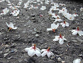 時期(じき)が早いのですが、このようなことは毎年(まいとし)起(お)きています。散っているのではなく、落ちているのです。 |