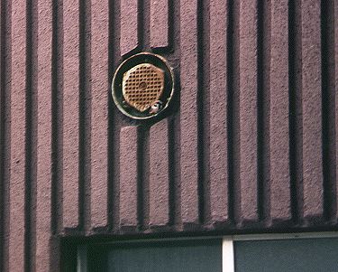 ほかの小学校の校舎の通気口にも鳥がとまっています。