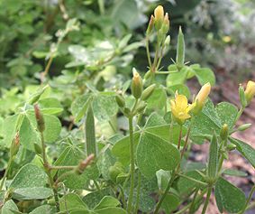 ……カタバミとヤマトシジミのかかわり…… カタバミもヤマトシジミもどの学校でも見ることができる動植物です。カタバミとヤマトシジミには深いかかわりがあります。ヤマトシジミの幼虫がカタバミの葉を食べるからです。 |
