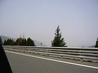 2006年4月8日午前10時ごろ、京都府綾部市付近を車で移動しているときに寒冷前線が通過しました。寒冷前線は弱いものでした。 通過後周囲の景色がうっすらと曇ってきました。黄砂です。 |