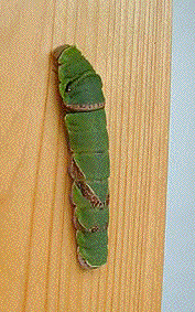 左の写真は、蛹(さなぎ)になる場所を探している『クロアゲハ』の幼虫です。黒っぽい部分のもようが違(ちが)います。