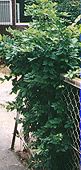 ・ここでは、アゲハチョウ・クロアゲハ・ナガサキアゲハなどのアゲハチョウのなかまが食べるミカンと、おなじくアゲハチョウのなかまでもアオスジアゲハが食べるクスノキ、そして、ひょっとしてオオムラサキやゴマダラチョウ・テングチョウなどを飼うときのためのエノキの三種類をのせています。モンシロチョウのように他の植物を食べるものもいます。