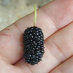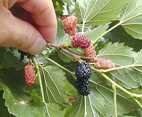 手に赤っぽい色がついていますが、実の汁(しる)です。ただし、アリがついているときがありますので、よく見てから食べてください。