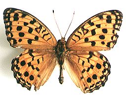 「手塚治虫さん」と「池田の自然」を調べていると、手塚さんと関わりがあった方がもっとおられることが分かってきました。もちろん、手塚治虫さんにとっての最初の親友であり、今もあの同窓会の世話をしておられる方や、同級生、同窓生の方々が市内には何人もおられます。 この「池田の自然」で手塚治虫さんを紹介する予定は始めからあったあったわけではありません。池田の自然について、様々な池田市周辺の自然について詳しい方から原稿を書いていただこうと考えていました。しかし、手塚治虫さんの話だけでもなかなか終わりそうにありません。 ところで、「手塚治虫さん」と「池田の自然」の初めに紹介したように、手塚治虫さんはどなたもご存じだと思いますが、「オオウラギンヒョウモン」という蝶については、ほとんど知っておられる方はないと思います。 「宝塚市立手塚治虫記念館」に入ってすぐ左に幼少年期の紹介などがあります。その中の「昆虫日記」に手塚治虫さんが1942年10月4日から1943年10月23日までに採集しておられた「蝶類目録」が展示されています。その71番目に「オオウラギンヘウモン」の記載があります。 奈良県の神社などが世界文化遺産に登録されています。若草山は、山焼きで有名ですが、『草原』の環境を残す数少ない場所でもあるのです。これを祝うため、人文字で観光PRを行うことになりました。その後、この人文字が行われたかどうかについては確かめていません。植物生態学の著名な方が異議(若草山の環境の保全こそが大切なことではないのか)を唱えておられたのですが…。 若草山は、この蝶の有名な生息地でした。今は、絶滅してしまっています。池田市周辺では、川西市一の鳥居、神鍋山、木津川河川敷、そして若草山…この四か所が最後まで残った生息地でした。吹田市や高槻市の記録も残っています。もちろん、すべての場所で絶滅しました。私は、若草山の標本は、1975年に採集されたものを一頭だけ持っています。自分で採集することが不可能だと思った時に昆虫標本の販売会でみつけたものです。それほど前に絶滅したわけではないのです。神鍋山で最後に生息を確認されたのは、当時大阪大学の学生だった方でした。1984年7月21日のことです。それ以降のここでの記録は知りません。現在、日本全体では「隠岐」・「秋吉台周辺」・「霧島周辺の自衛隊演習林」に生息地が残っているだけです。北海道を除く全国の『草原』で見られたチョウは、今、姿を消そうとしています。 身近な絶滅のおそれのある昆虫というと「オオムラサキ」や「ギフチョウ」などがマスコミの話題になります。しかし、オオウラギンヒョウモンのようにごくふつうに生息していた昆虫が、絶滅の危機にあります。なぜこのようなことがおこるのでしょう…。 若草山に生息していたオオウラギンヒョウモン (地震で標本箱が落ちたため破損がひどくなりました)